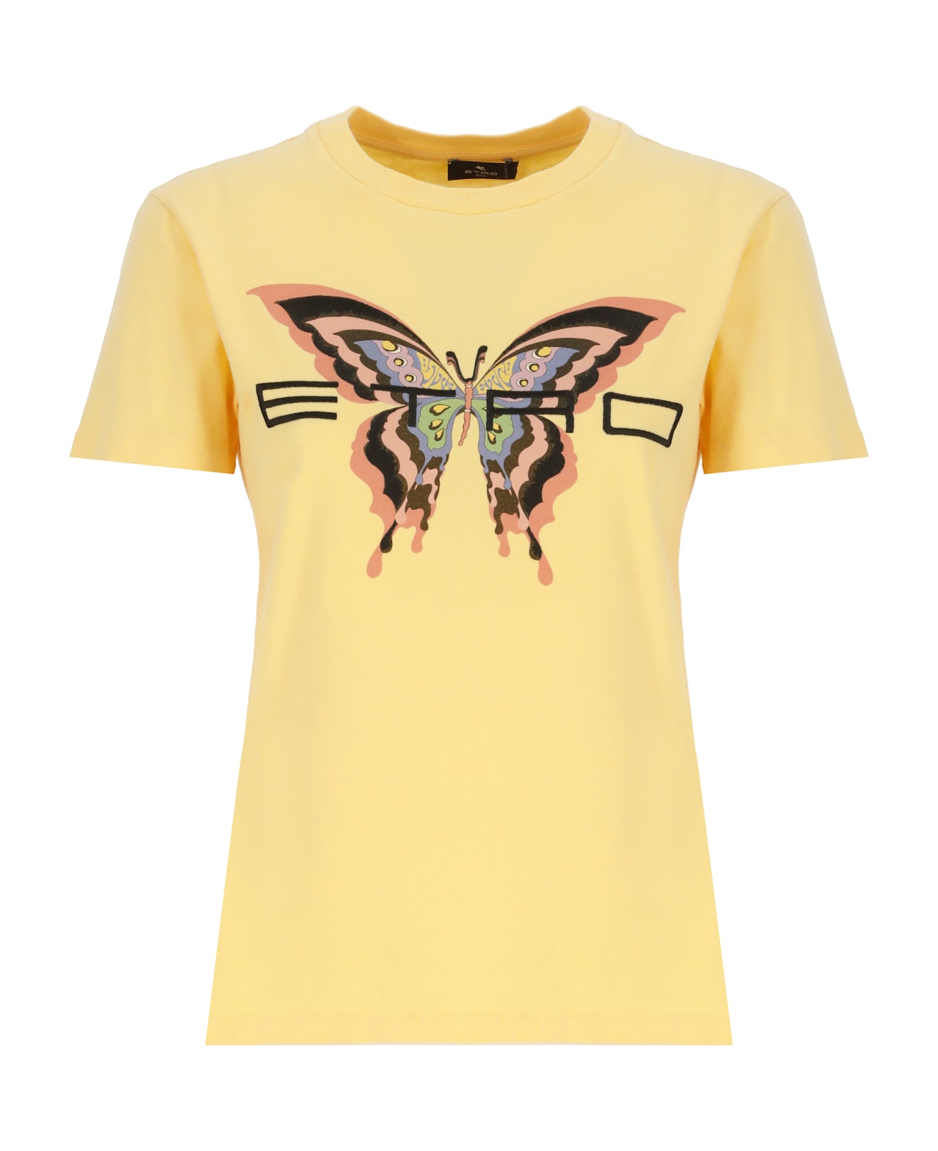 - Yellow Etro cotton t-shirt for woman - Crewneck - Short sleeves - Front contrasting color logoed embroidery Composition: 100% Cotton Embroidery:, 100% Polyester