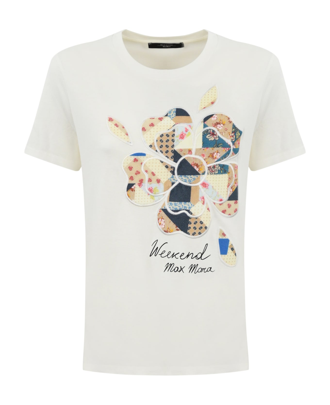 women's cotton t-shirt: cotton jersey short sleeves crew neck floral print on the front with logo straight line straight hem regular fit color: off white composition: 100% cotton