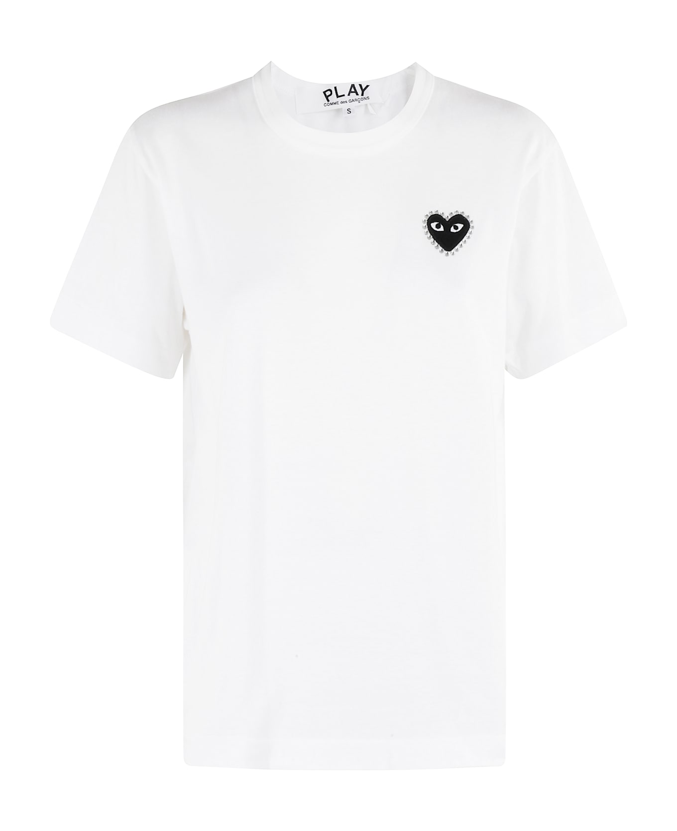 Heart T-Shirt - Comme Des Garcons Play - White color - Crew neck - Short sleeve - Black Heart patch on chest with rhinestones - Regular fit