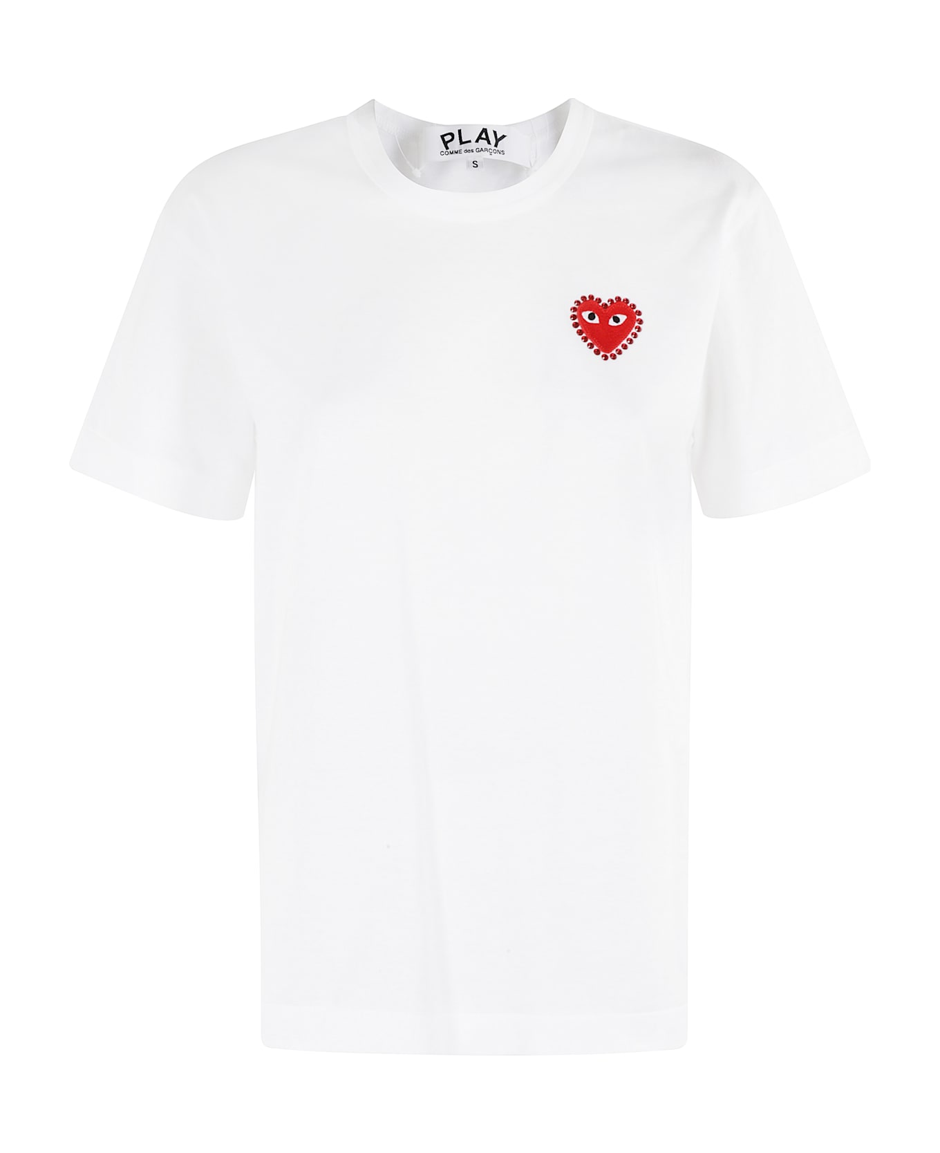 Heart T-Shirt - Comme Des Garcons Play - White color - Crew neck - Short sleeve - Red Heart patch on chest with rhinestones - Regular fit