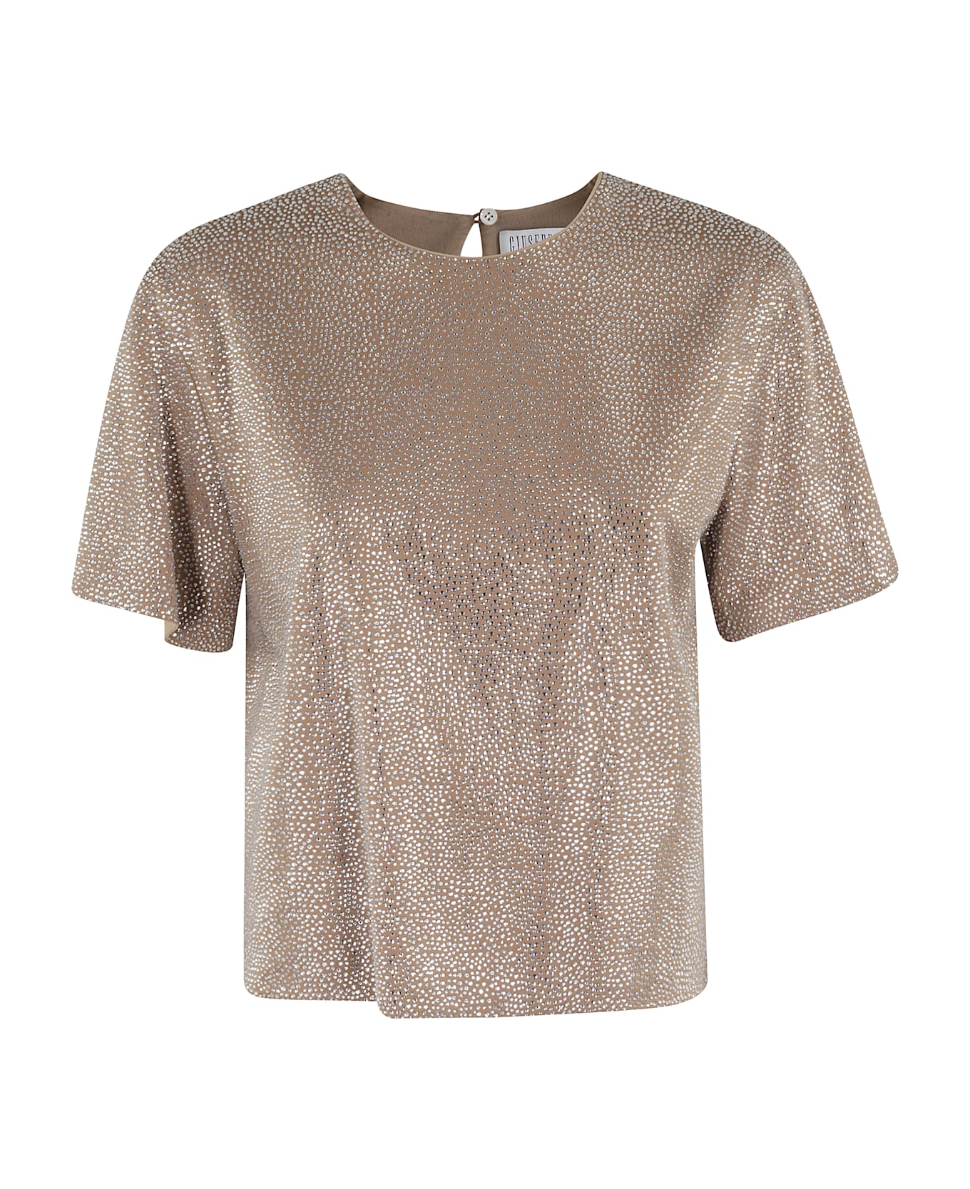 Top - Giuseppe Di Morabito - Nude color - Mesh fabric with all-over rhinestones - Crew neck with back closure - Short sleeve - Boxy fit