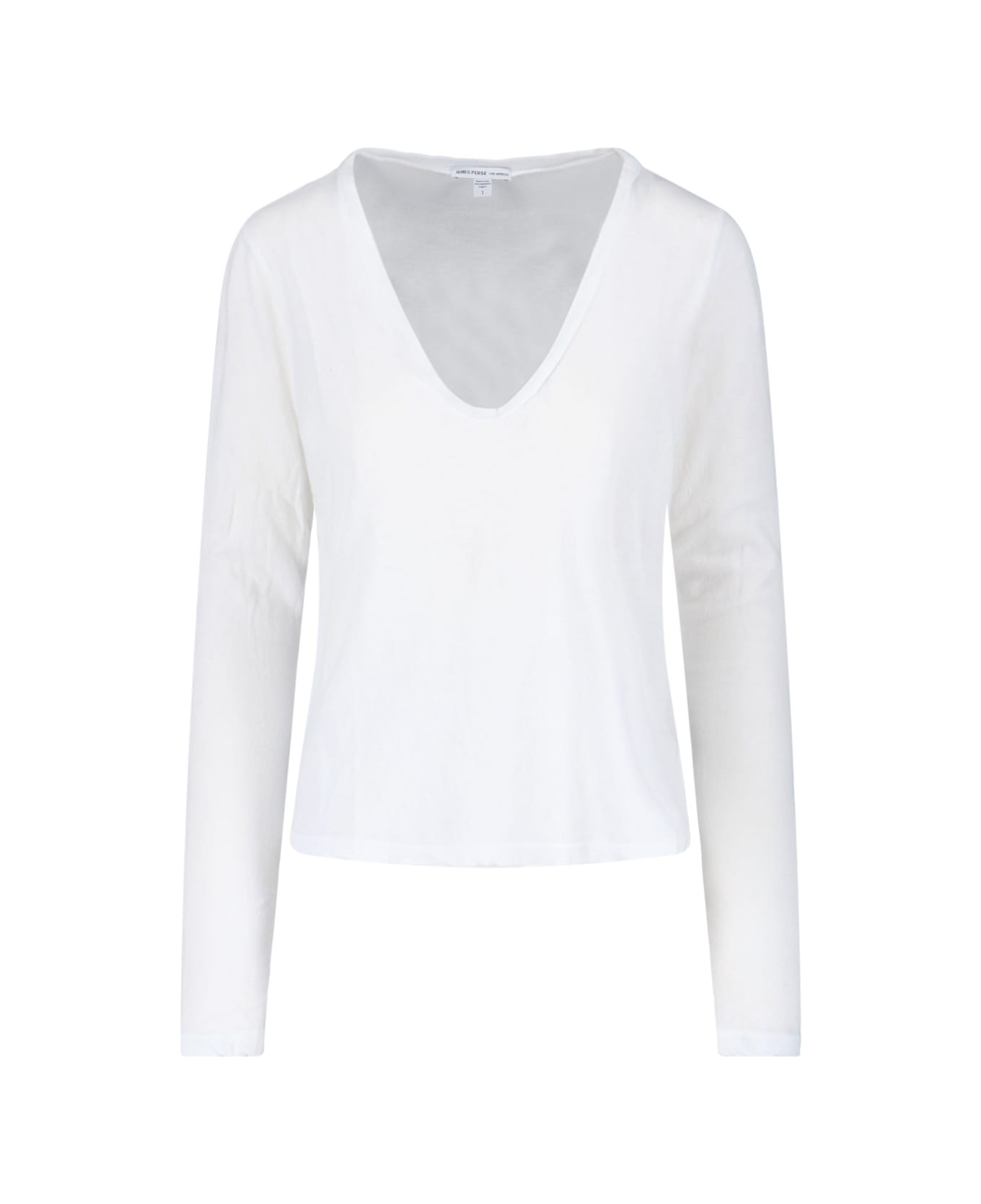 James Perse V-neck T-shirt in white cotton with straight hem.