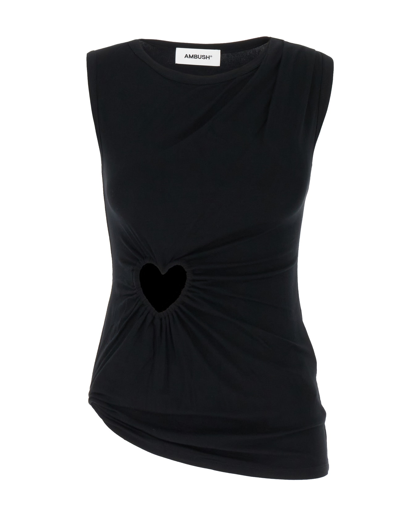 Top realized in stretch viscose characterized by cut-out heart detail at the front. -Asymmetric hemline