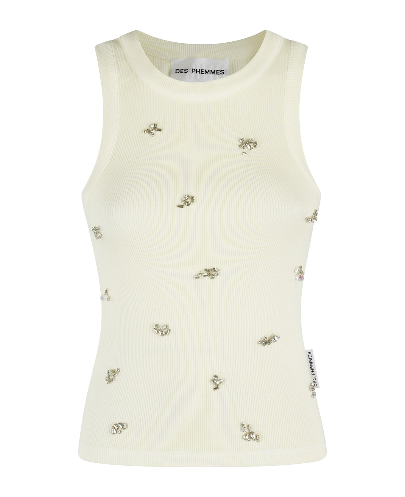 Classic Rhinestone Tank Top - Des Phemmes - Pastel yellow color - Stretch rib fabric - Crew neck - Front rhinestone appliqués - Fitted fit