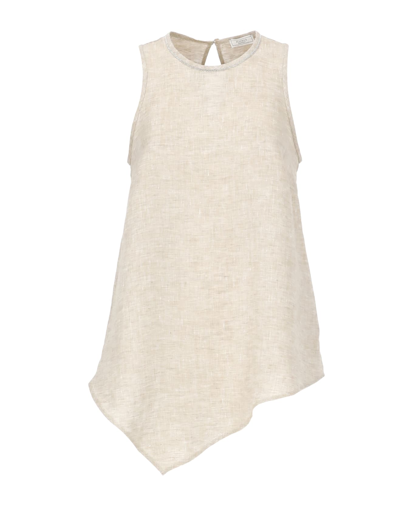 - Beige Peserico linen top for woman - Crew neck with light point details - Sleeveless - Asymmetric hem Composition: 100% Linen