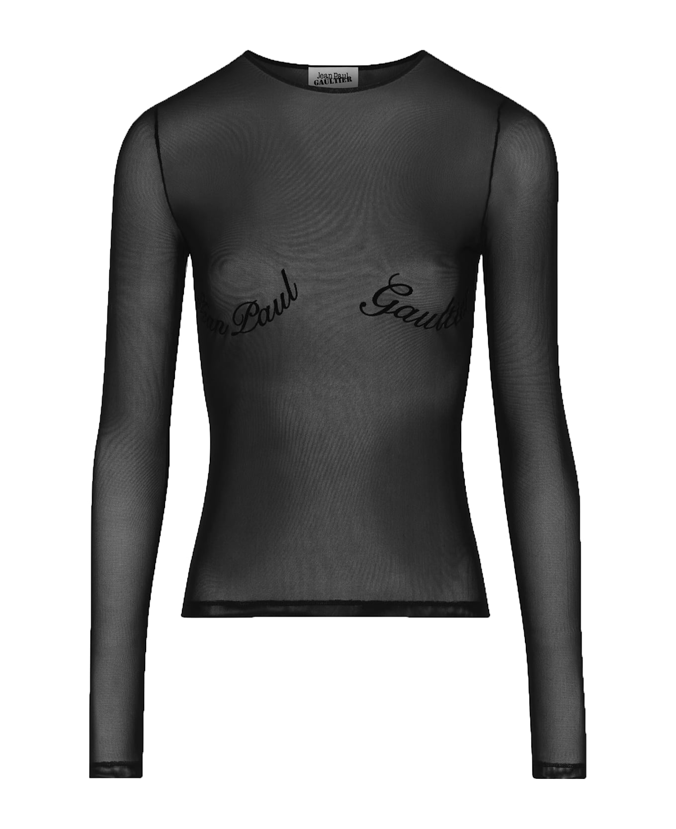 Jean Paul Gaultier black The Jean Paul Gaultier Flocked Top, crewneck, transparent effect, embroidered logo on the front