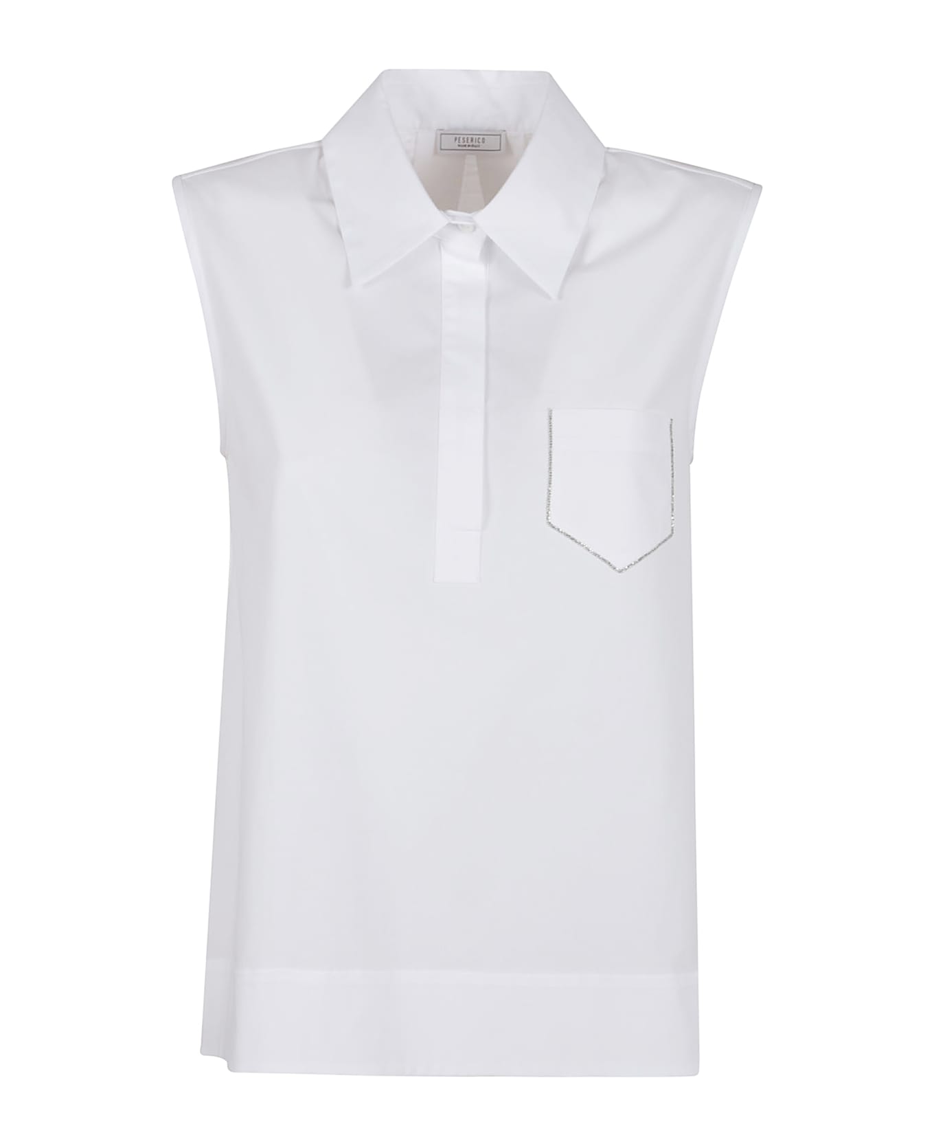SLEEVELESS AND SLIGHTLY TRAPEZOID POLO SHIRT WITH MASCULINE COLLAR AND BUTTONS WITH POCKET ON THE FRONT AND APPLICATIONS