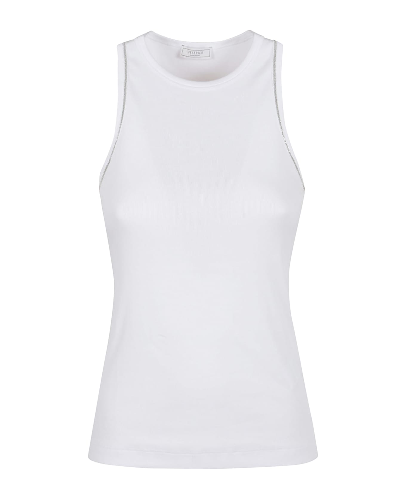 Stretch jersey micro-rib top by PESERICO. American neckline; crew neck; tight fit design that follows the shape of the body. Characterized and embellished with delicate light stitch on the armhole.