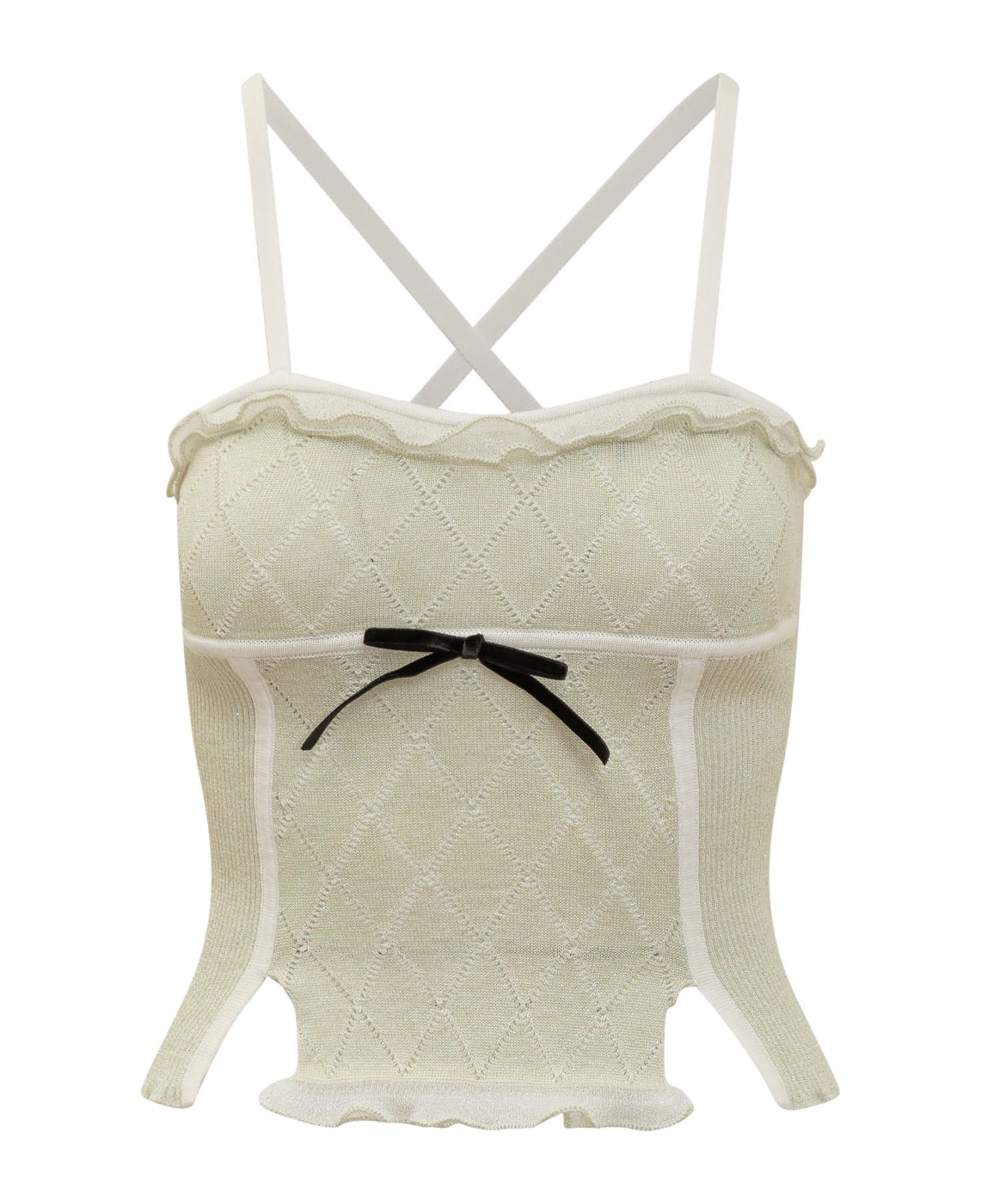 Top with straps. Slits on the sides. Detail with bow on the front.