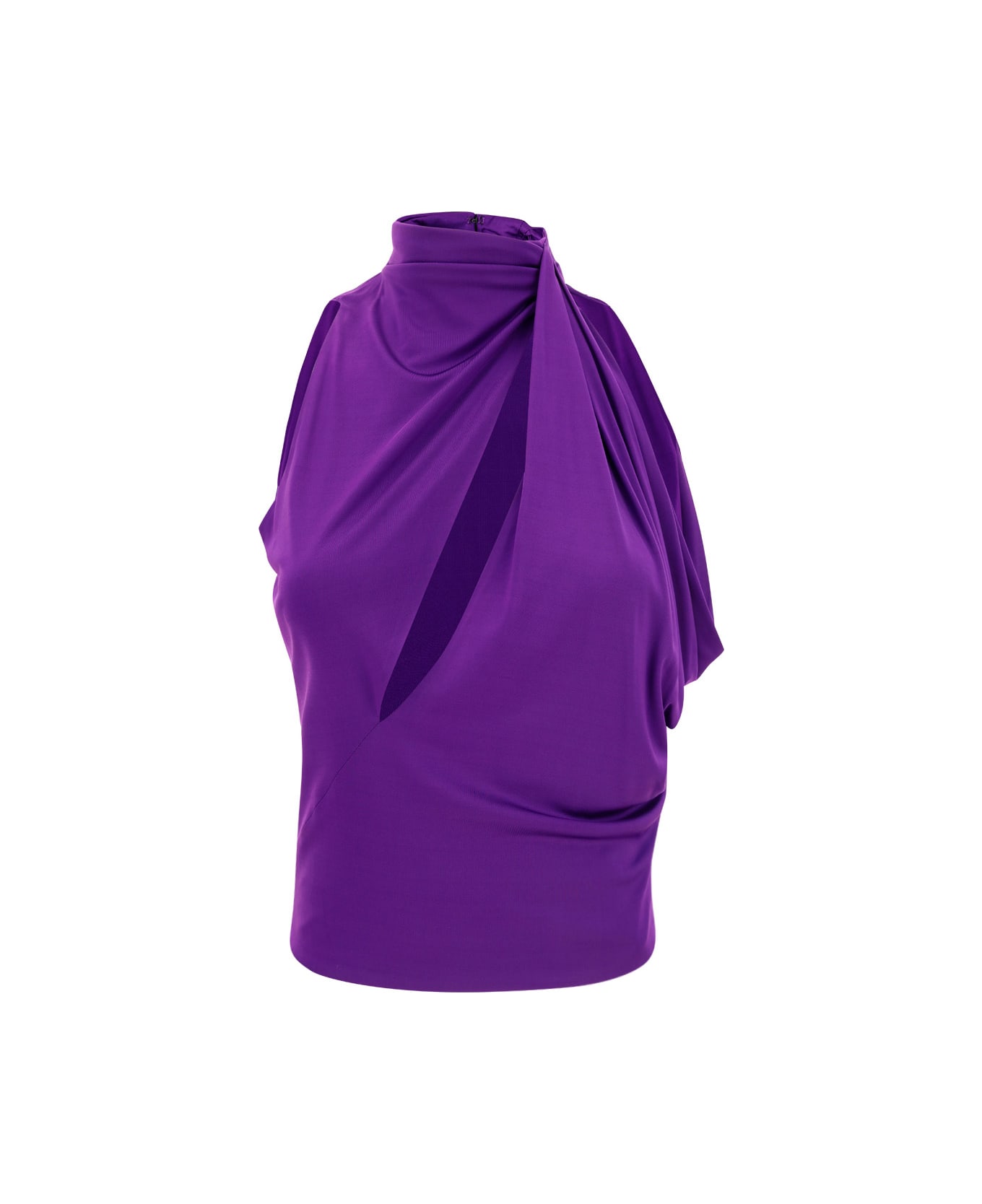 Top di gianni versace, high crew neck, hook and loop fastening at back, draped detail from neckline to neckline, deep cut-out detail on front, monochrome pattern. Composition: 100% % Viscose