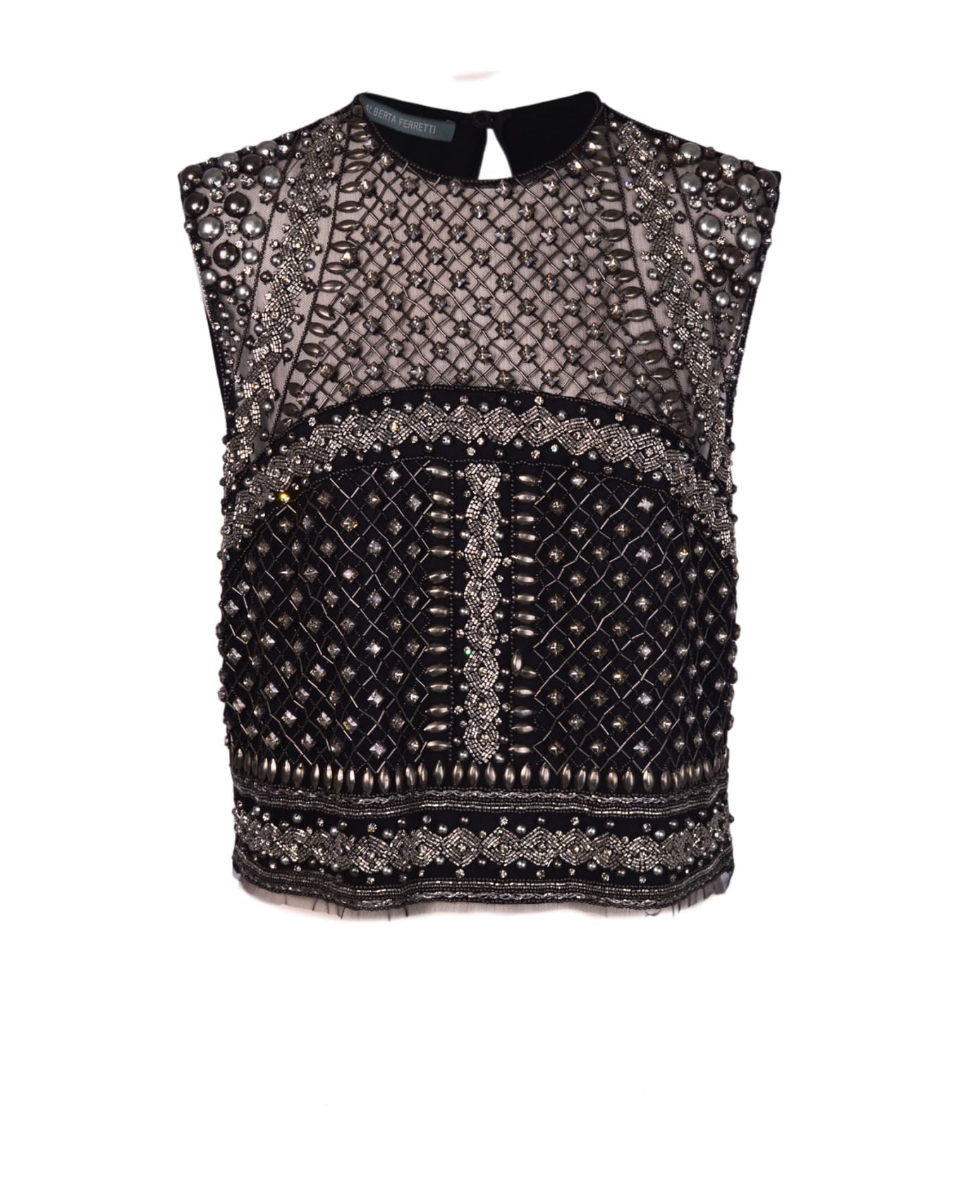 • sleeveless Top In Tulle Embroidered With Metallic Elements, Stones,