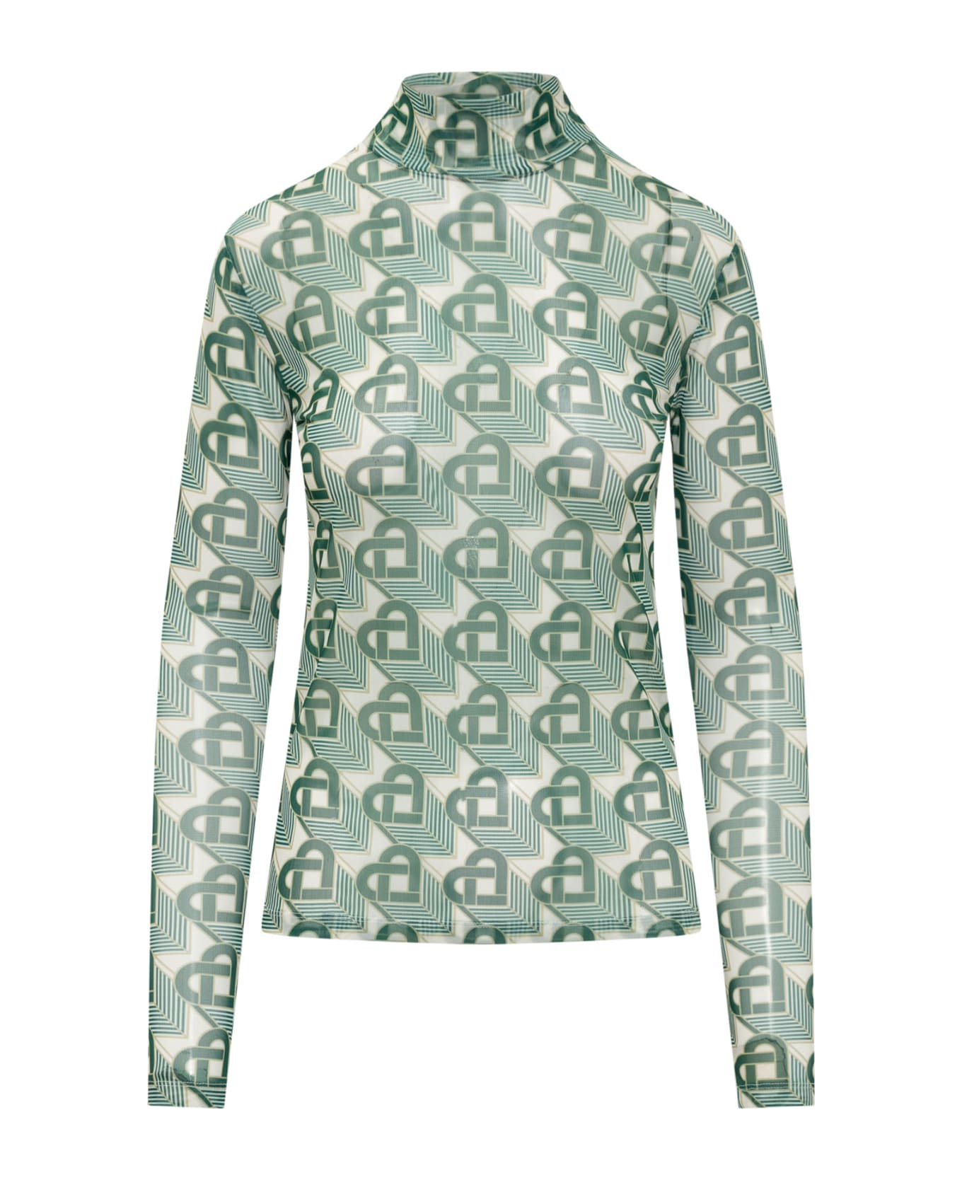 High neck top. Long sleeves. All-over print. Composition: 93% Polietere Recycled, 7% Elastane