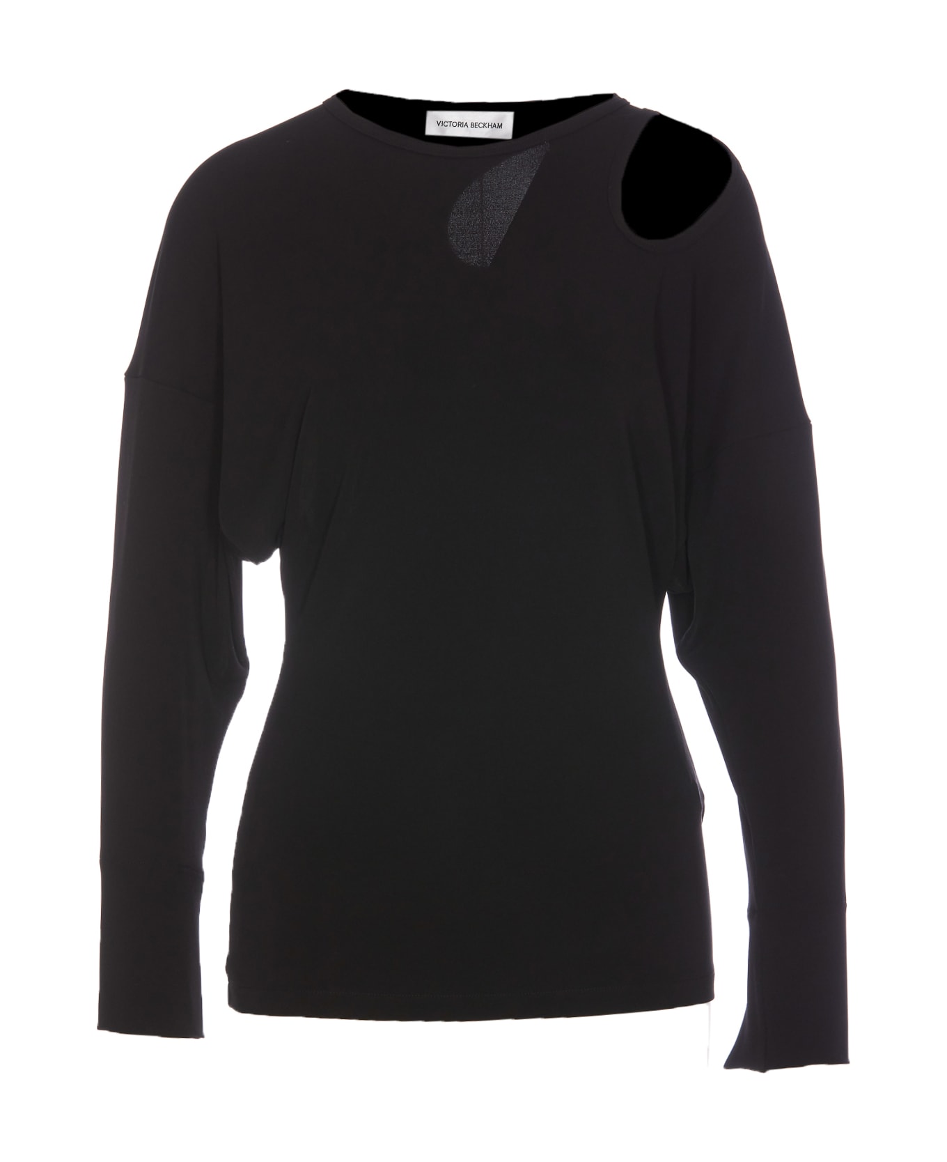 Victoria Beckham black twist detail top, long sleeves, split detail on cuffs, cut out detail on shouder