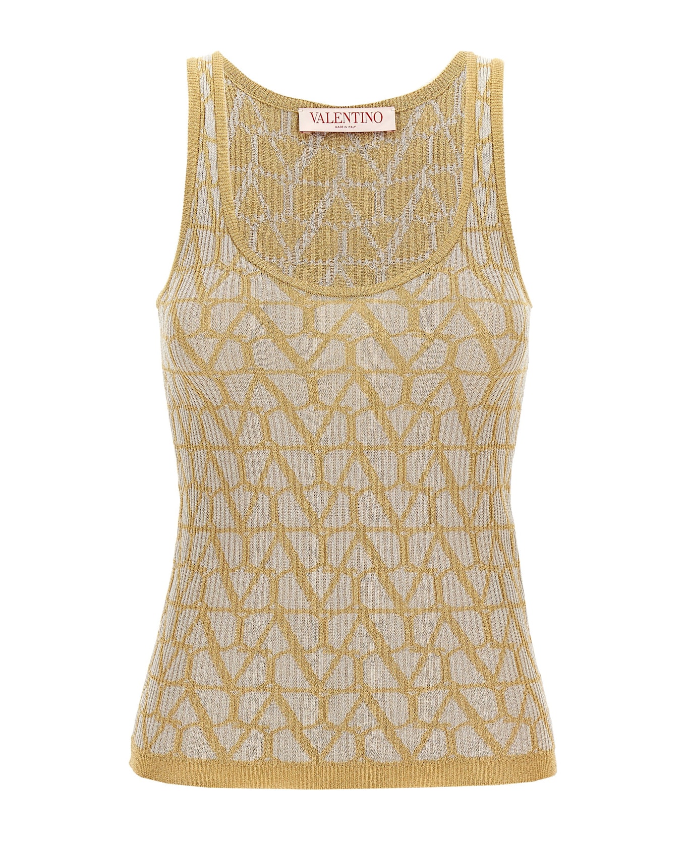 'Toile Iconographe' knit top with scoop neck, sleeveless. Composition: 81% viscose 19% metallic fibres
