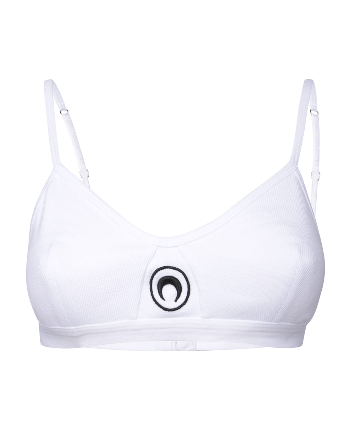 Crafted in soft stretch cotton, this Marine Serre bra top features adjustable straps for tailored comfort and an iconic black moon print at the center, highlighting the brand's contemporary and distinctive aesthetic.