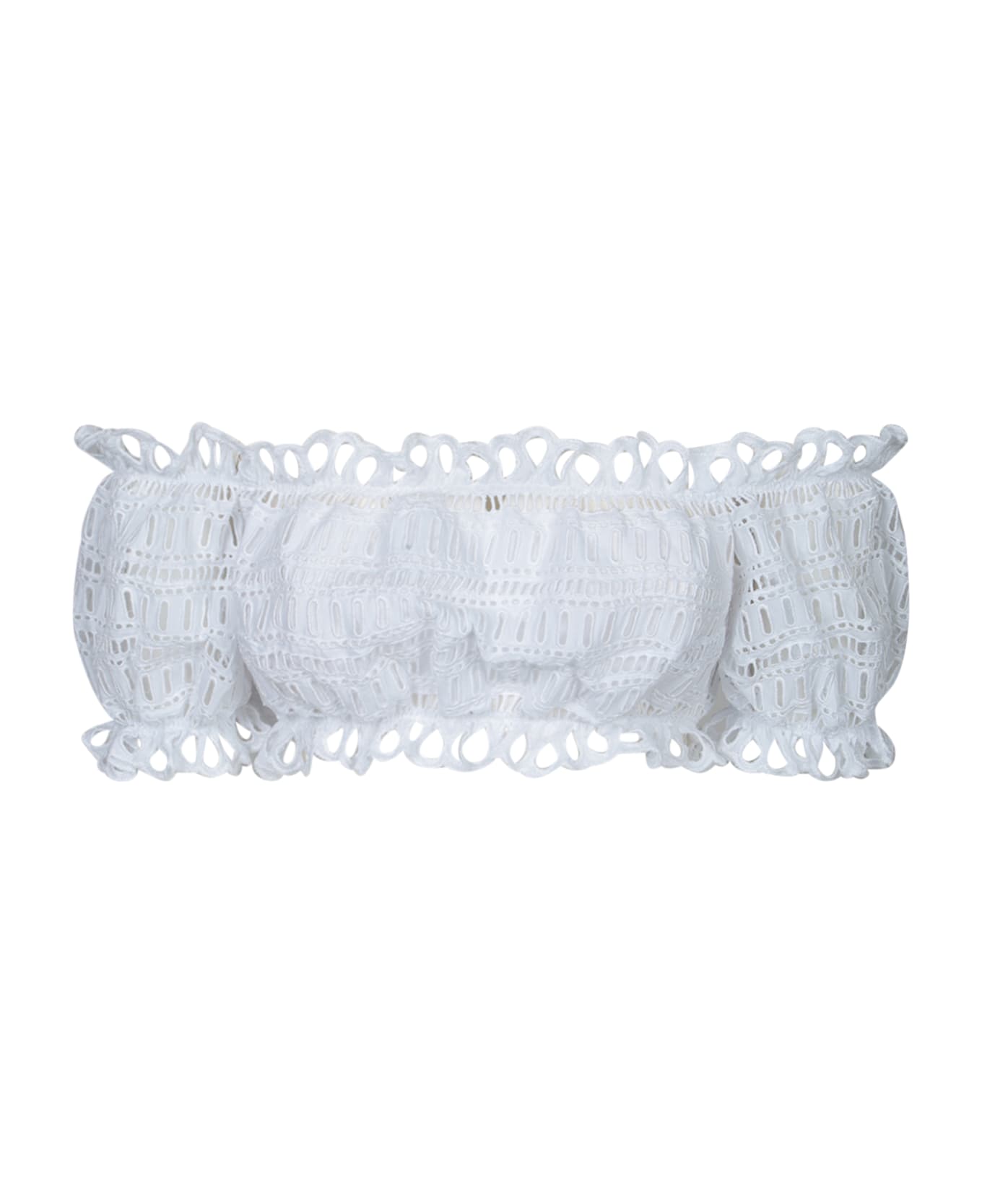 Refinement and elegance converge in this white bandeau top by Ermanno Scervino. Featuring an intricate sangallo design, it's perfect for chic summer occasions.