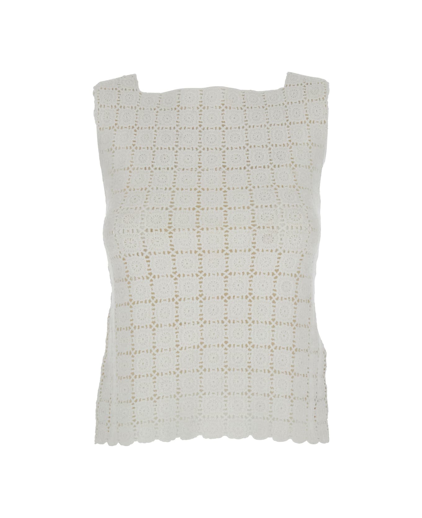 Top White Knitted Square neckline Button closure at back Slits at bottom Silver colored metalware Straight hem Cotton Regular fit