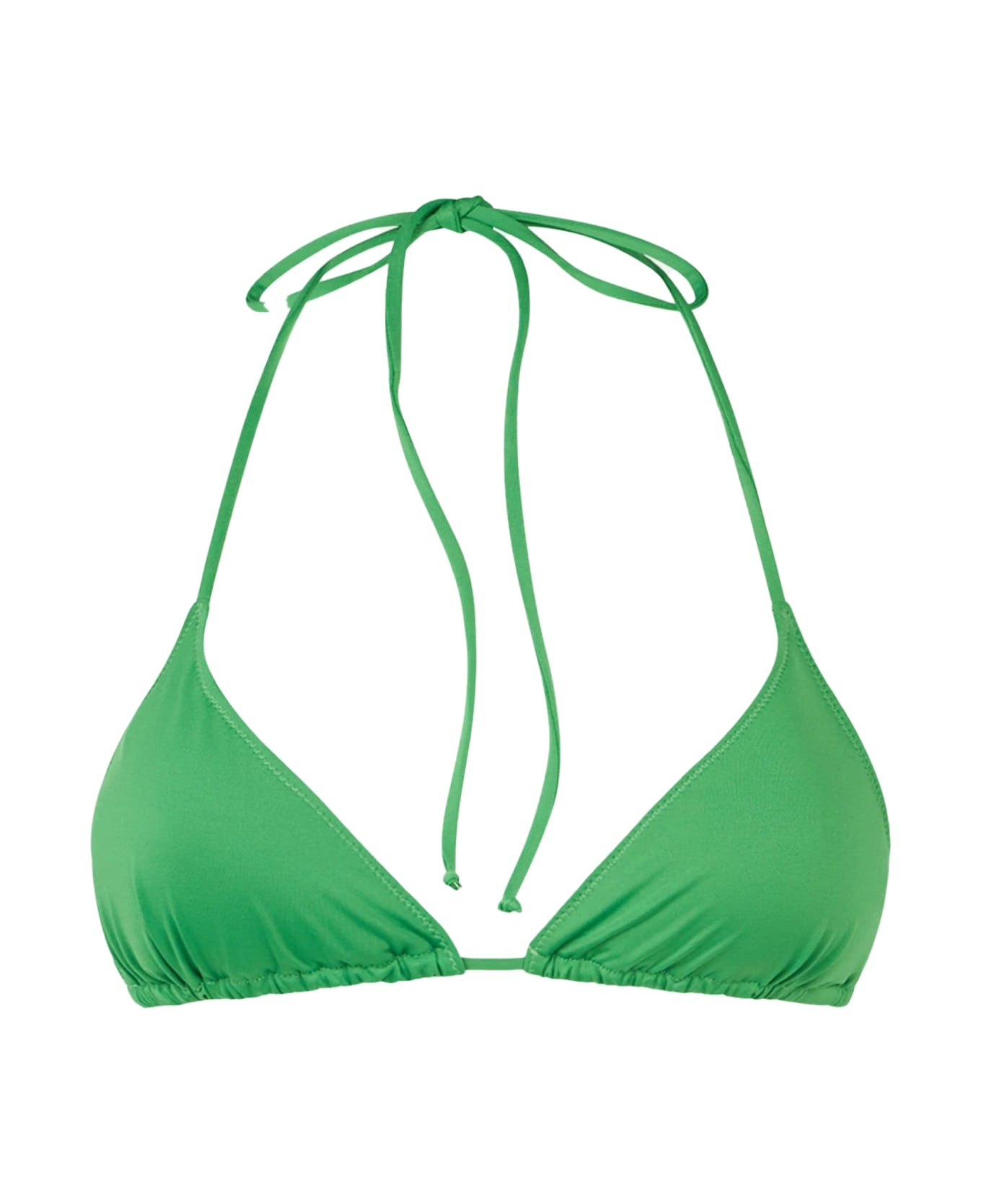Woman triangle top Green plain color Adjustable laces on the back and on the neck Stretch fabric Regular fit Composition: 90% Polyamide 10% Elastane Care instructions: Cold hand wash. Do not soak. Do not iron. Do not dry off in contact with other garments. Rinse after contact with chlorine or salt water