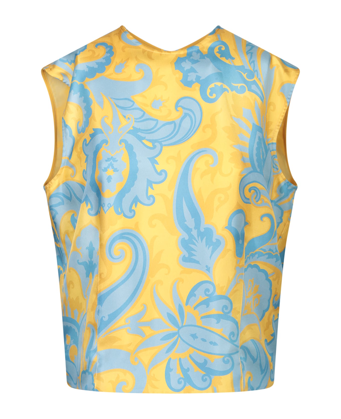 Timeless elegance meets contemporary allure in this ETRO top, exquisitely crafted in Italy from pure silk, featuring a vibrant paisley print in yellow and light blue tones. Composition: 100% Silk