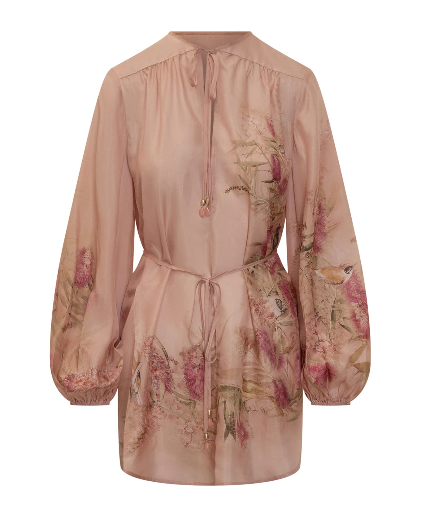 Zimmerman Cascadian blouse in lightweight organza with floral print and waist drawstring.