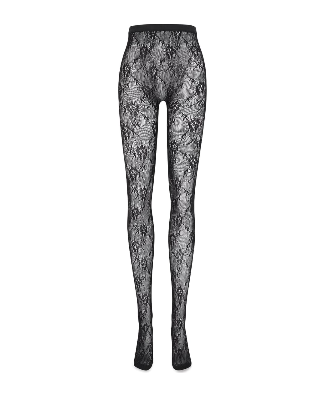 Saint Laurent lace tights in black with elasticated waistband. composition: 86% polyamide, 14% elastane
