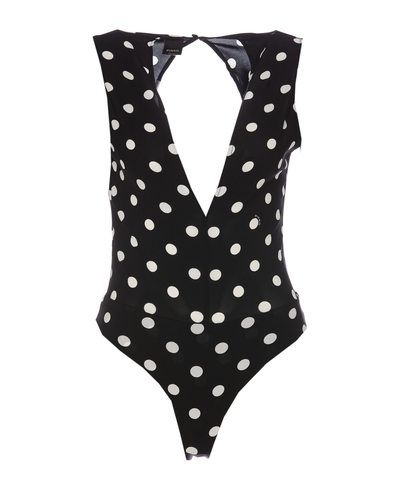 Pinko black and white Camera body with back button closure, polka dot print, sleeveless