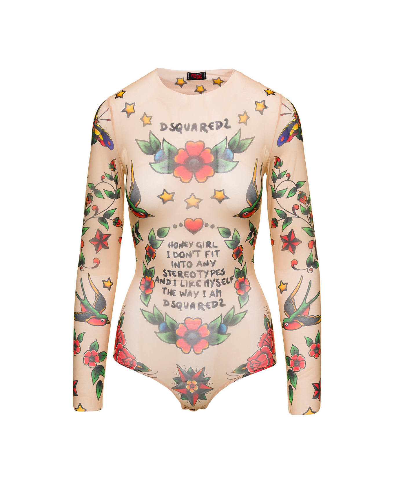 Long Sleeves Printed Body Suit In Tulle Flesh Pink Woman Dsquared2