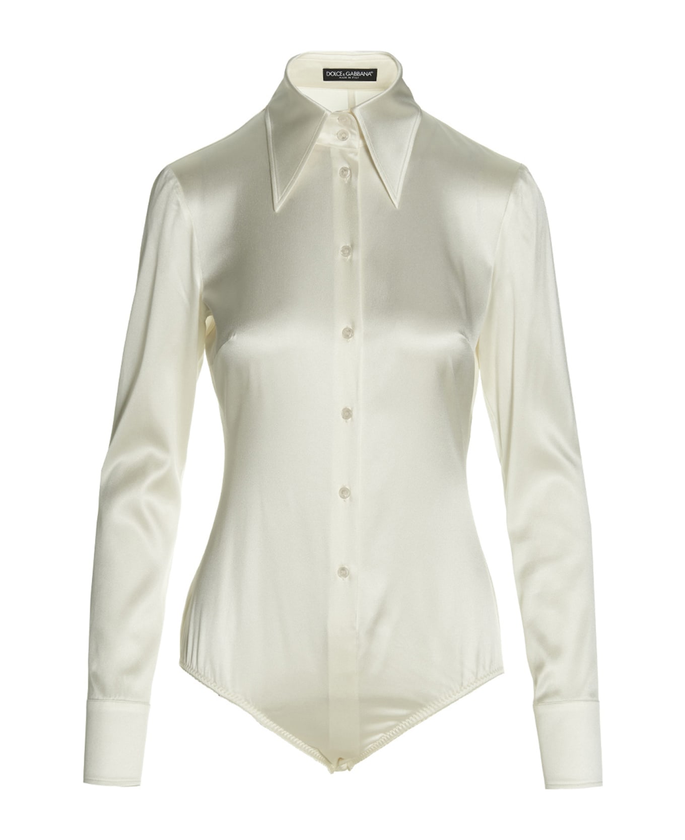 Silk shirt bodysuit with button closure, pointed collar and long cuffed sleeves. Composition: 96% silk 4% elastane