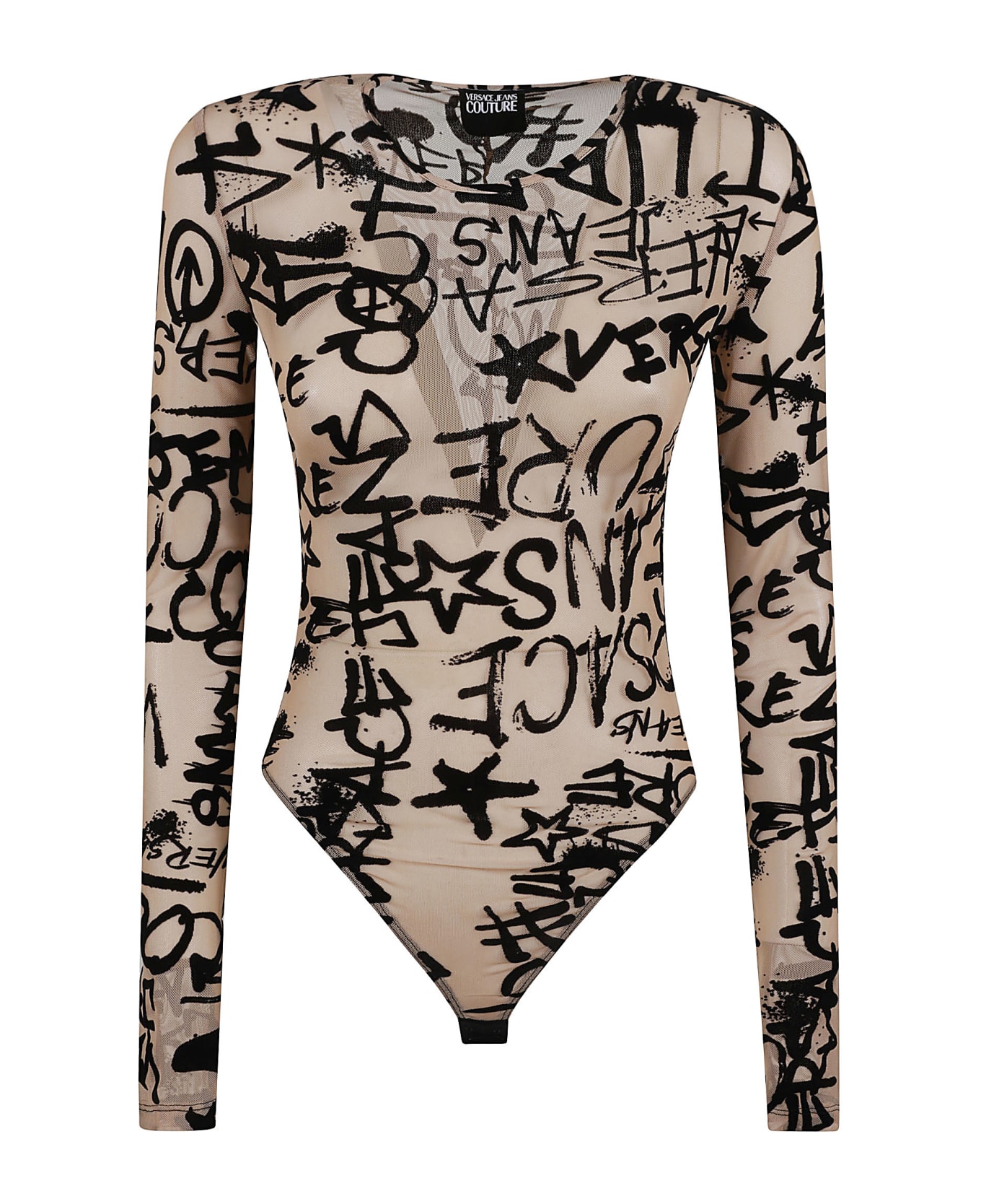 Tulle Print Flock Graffiti Bodysuit from Versace Jeans Couture