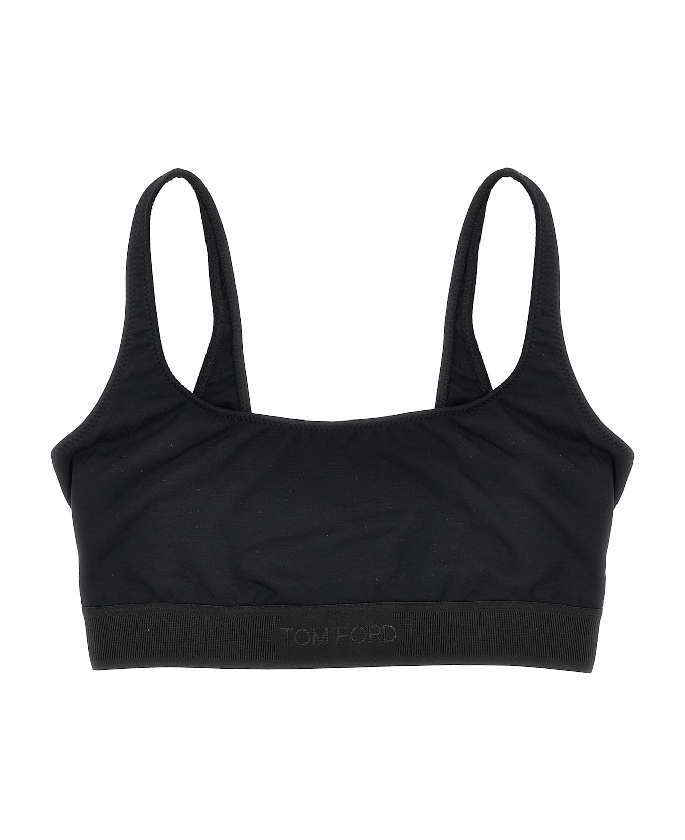 Bra in modal jersey with deep neckline at the back, and elastic with tone-on-tone jacquard logo on the hem.
