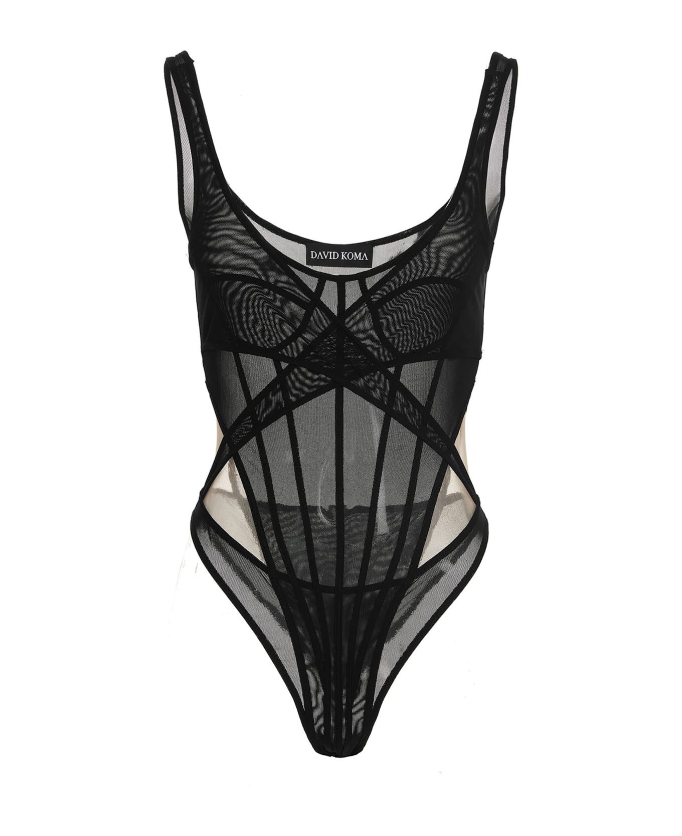 Net Boning & Cashmereer' bodysuit crafted in a transparent mesh fabric with round neckline, contrast mesh details.