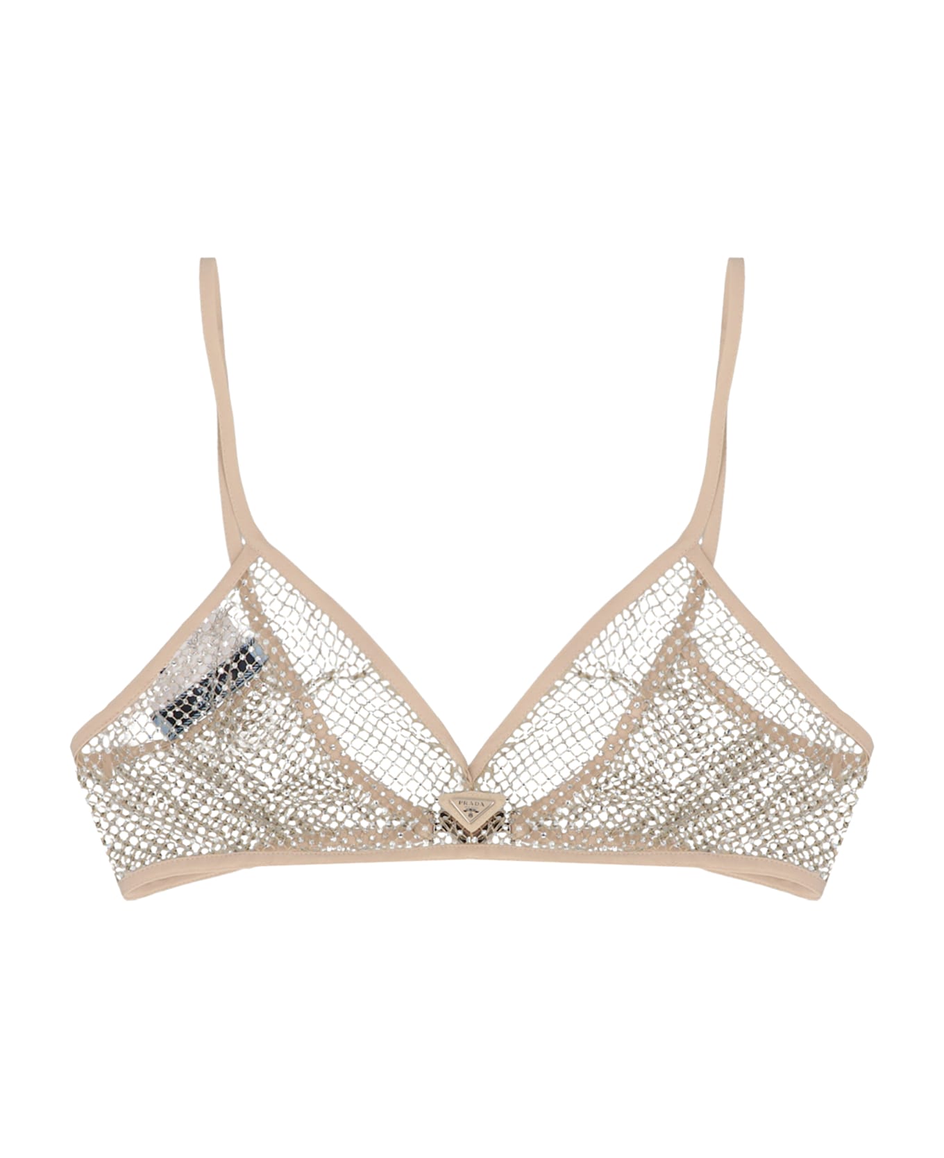 Mesh bra with rhinestone application and logo. Composition: