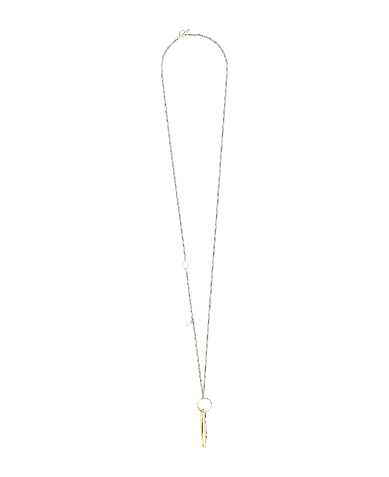 601' chain necklace in handmade brass with freshwater pearl and pendants, adjustable, T-closure. Composition: 100% brass