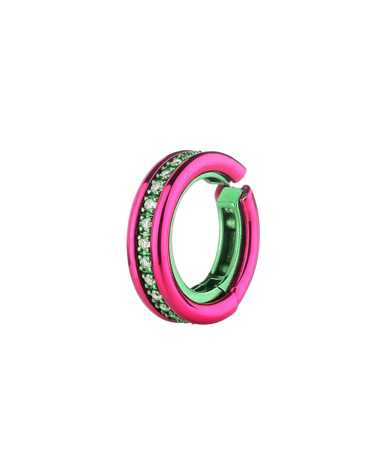 Eéra single earcuff handcrafted in 18k gold with two-tone fluo finishing, enriched by 0,136 carats diamonds. Composition: oro, 18kt (1,6 gr), diamanti 0,136 carati