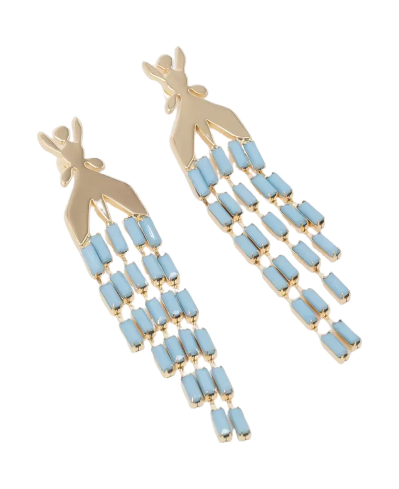 women's earrings with crystals: brass and glass flat fly colored baguette pendant fringes pin closure composition: brass, glass