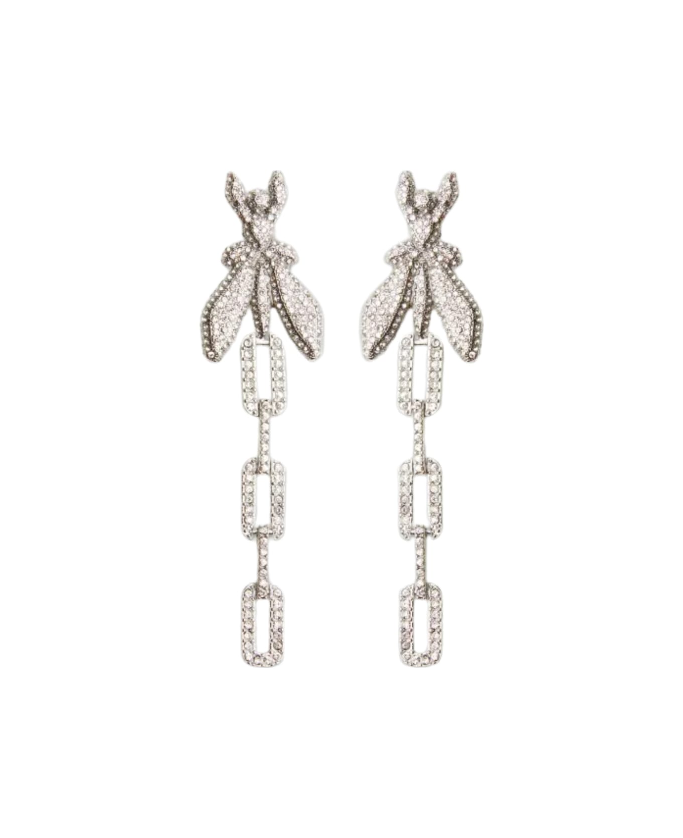 women's earrings: steel polished finish fly details all-over rhinestones butterfly closure weight (single earring): 11 g width: 2. 3 cm height: 9 cm composition: 100% zama first application: 100% glass