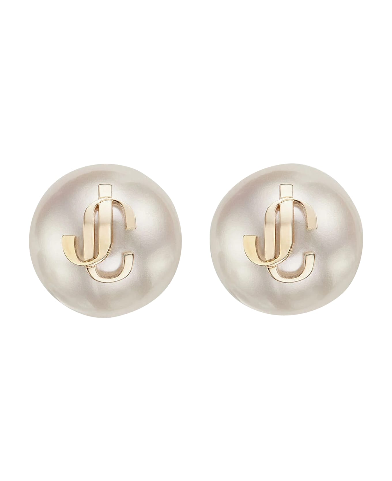 Jimmy Choo pearl JC pearl earrings, frontal golden logo, lobo model Composition: 100% Brass, 100% Resina