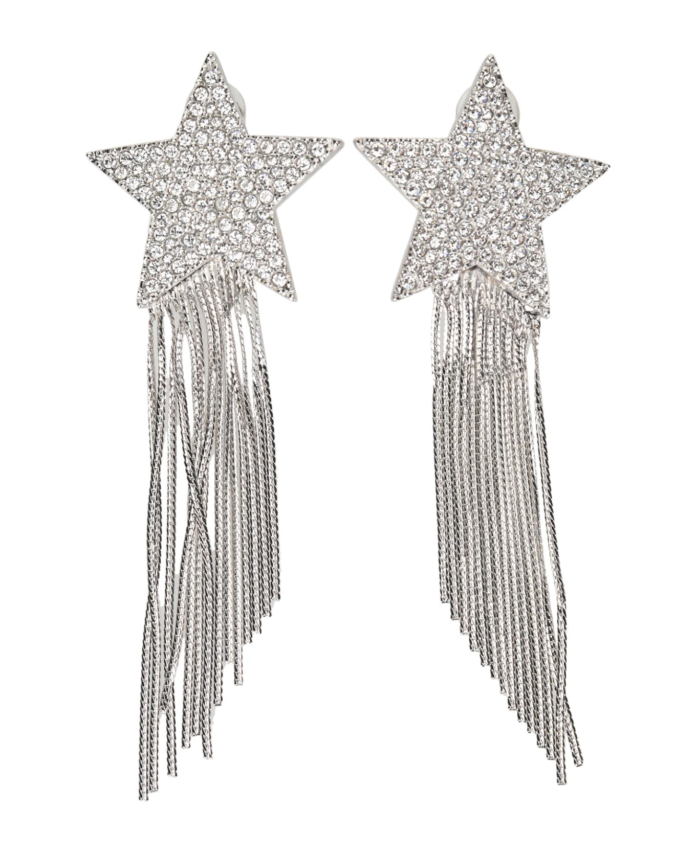 Silver-tone Star Earrings By Saint Laurent. Featuring: - Embellished Star With Crystals; - Asymmetric Metal Chain Fringing.