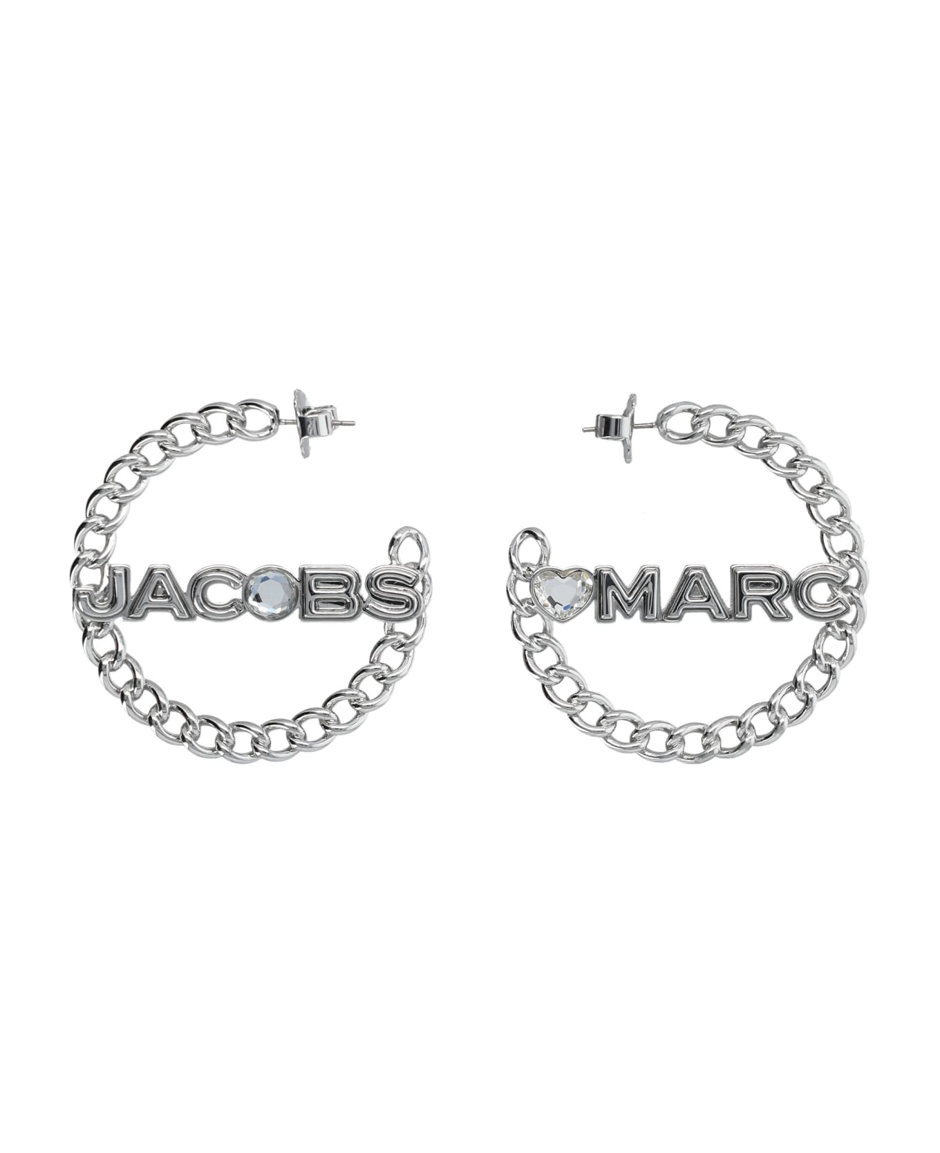 The Charmed Chain Hoops By Marc Jacops. Featuring: Silver-plated Brass, Glass And Crystal Stone Heart Charms Chainlink Design Post With Butterfly Clutch Diameter: 5cm