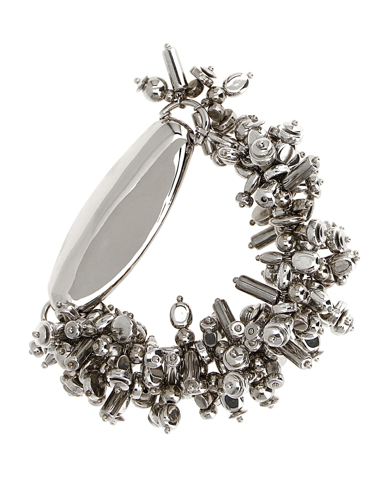 Embroidered' bracelet in copper, acrylic and brass with embroidered beads and elements of electroformed shape.