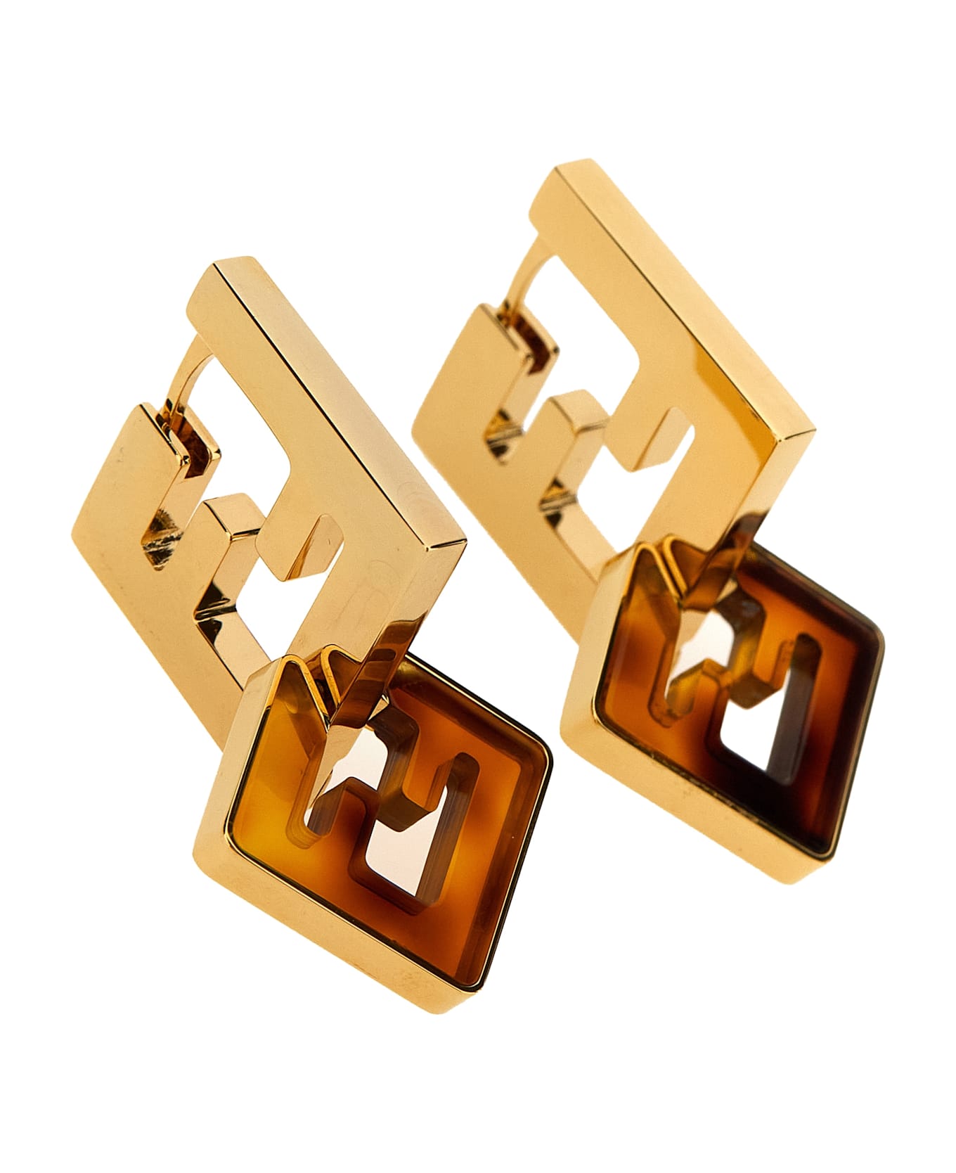 Forever Fendi' metal earrings with gold finish and FF pendant pattern in tortoiseshell plexiglass. ITEM CANNOT BE RETURNED Composition: 100% brass