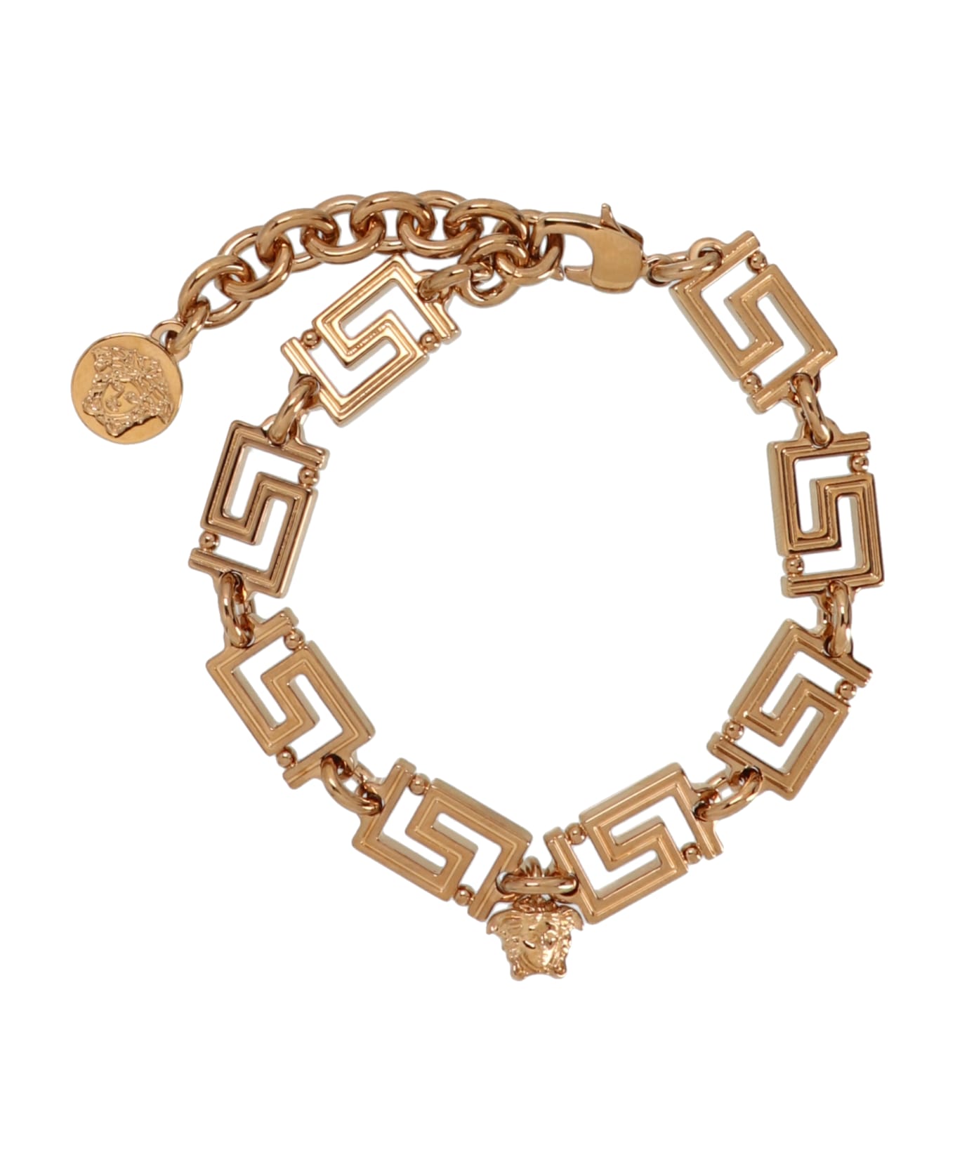 'Greca' metal bracelet with greek-shaped links and Medusa pendant. Composition: 100% metal