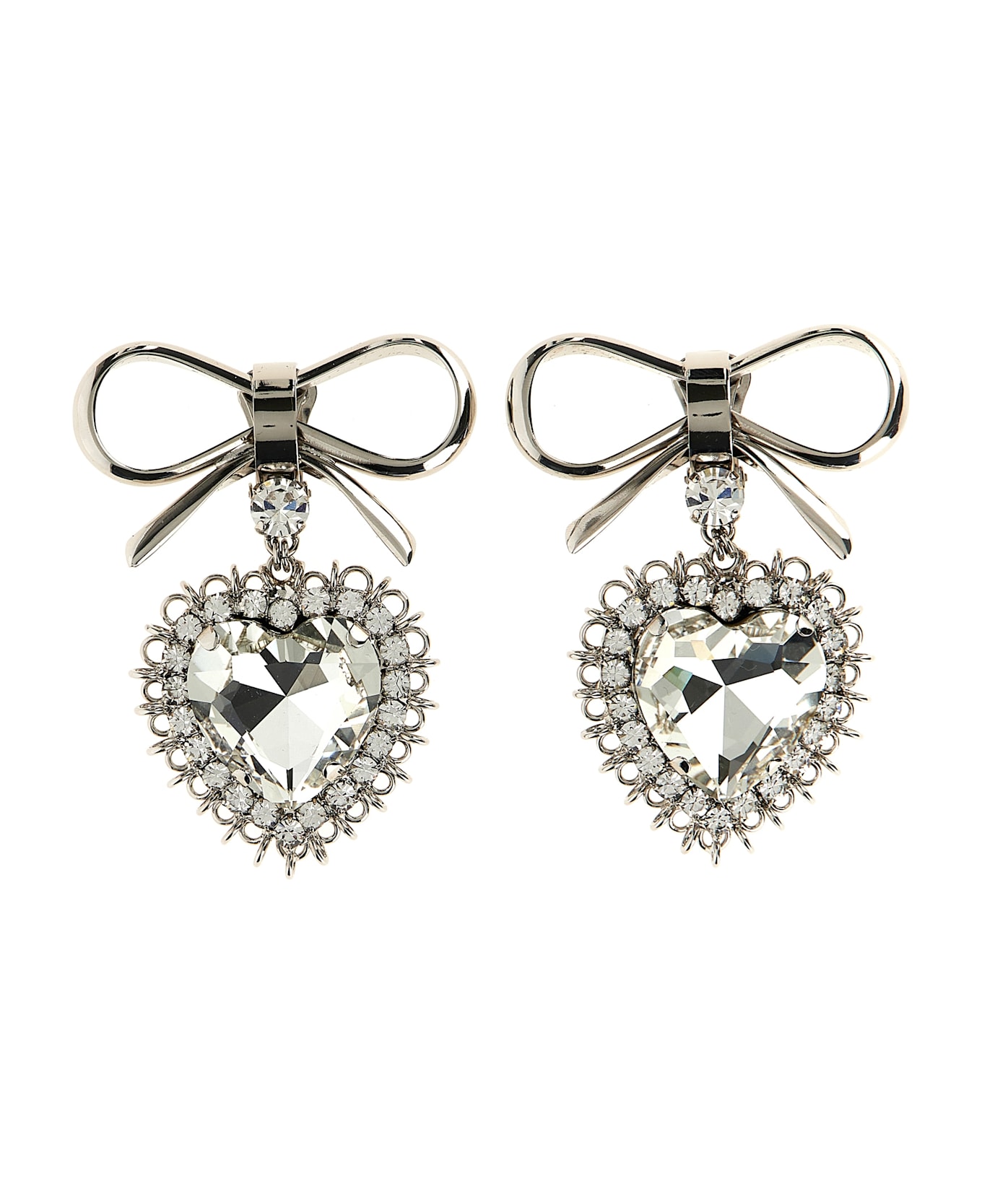 Metal bow earrings, with heart-shaped crystal pendant, clip closure. THIS PRODUCT CANNOT BE RETURNED.