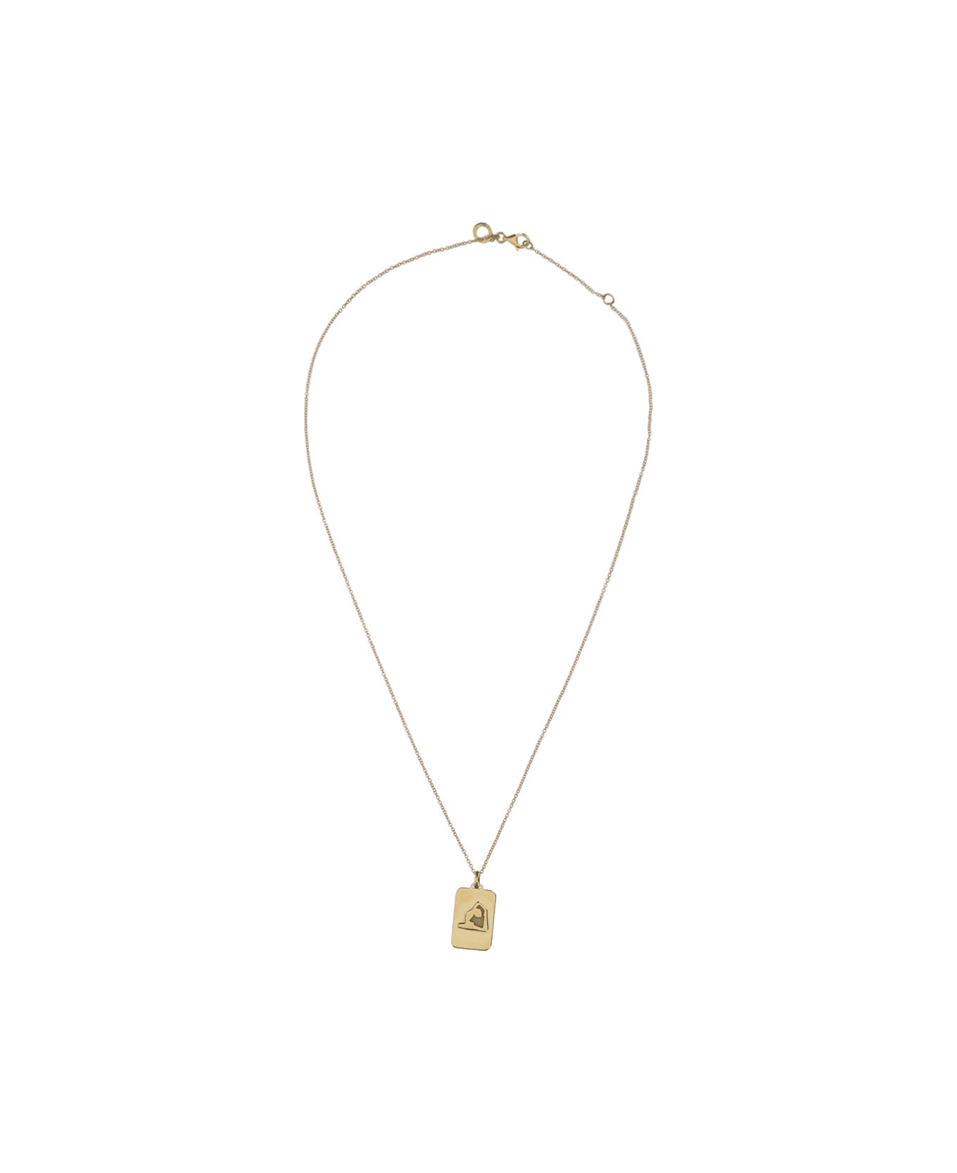 Chakra necklace in 18k gold by annarita celano, pendant with engraved silhouette of a woman practicing yoga.