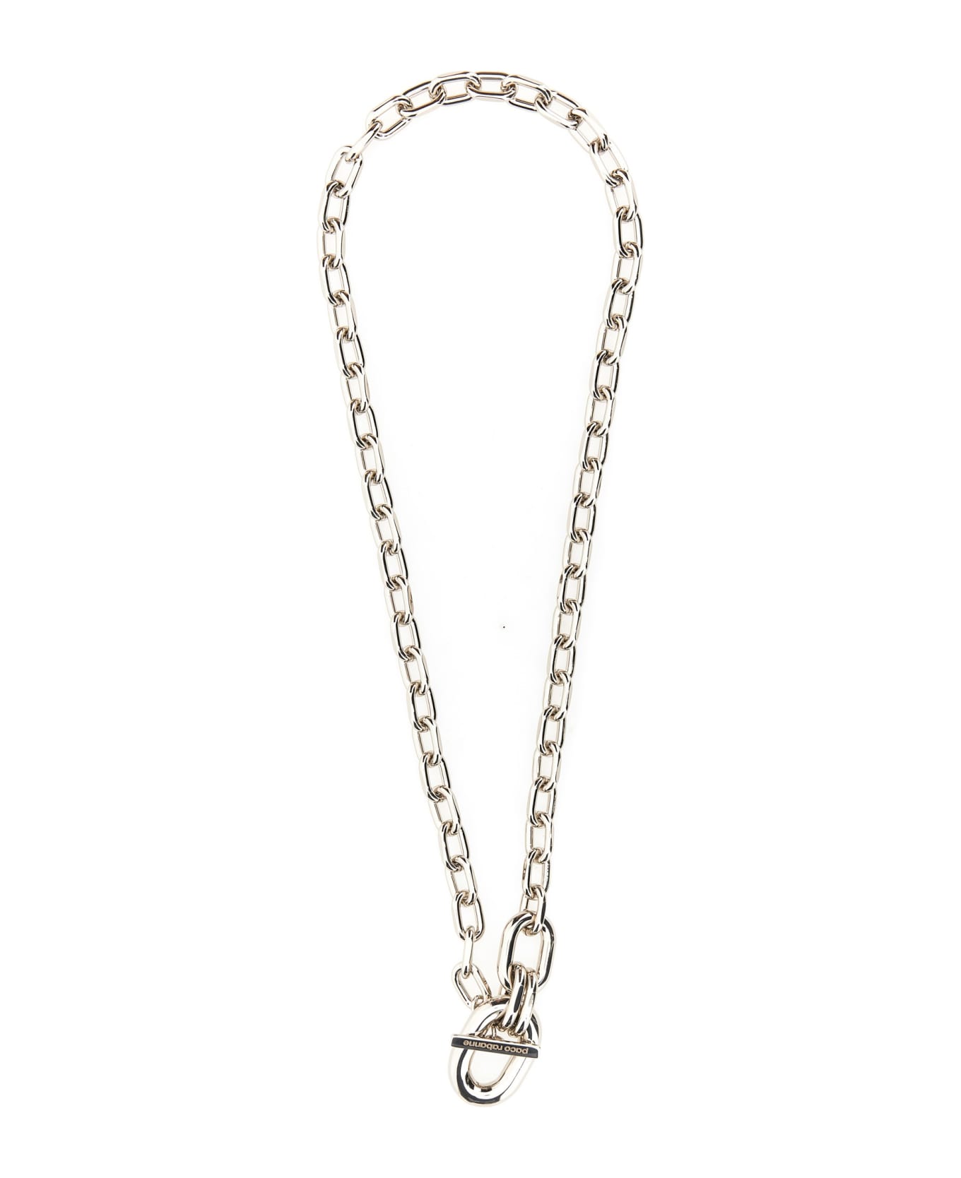 - Long Necklace- Metal Mesh- Interlocking Bar Clasp- Engraved Logo- 100% Brass