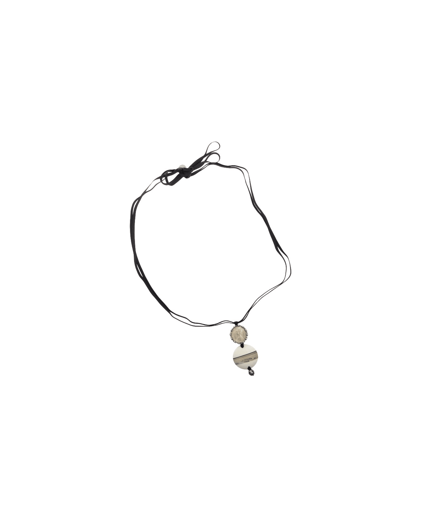 Handmade necklace Color: black, white and silver Metal insert