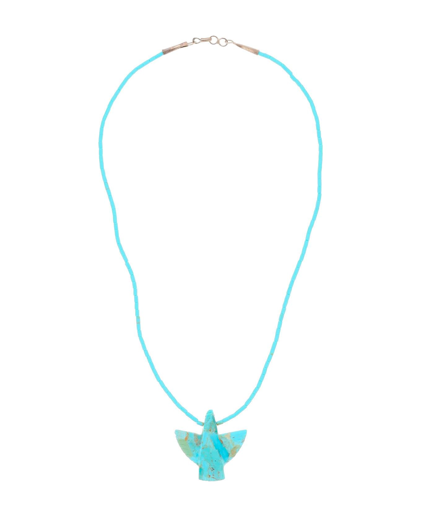 Turquoise Eagle chocker necklace by Jessie Western made by Native American Indian, composed of a turquoise rhinestones strand enriched with a middle eagle-shaped turquoise. Silver hook closure.
