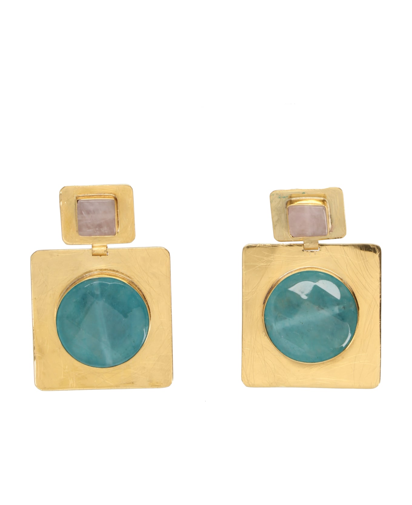 Pink' gold plaqued brass earrings with giada stone appliqués and pink quartz. THIS PRODUCT CANNOT BE RETURNED