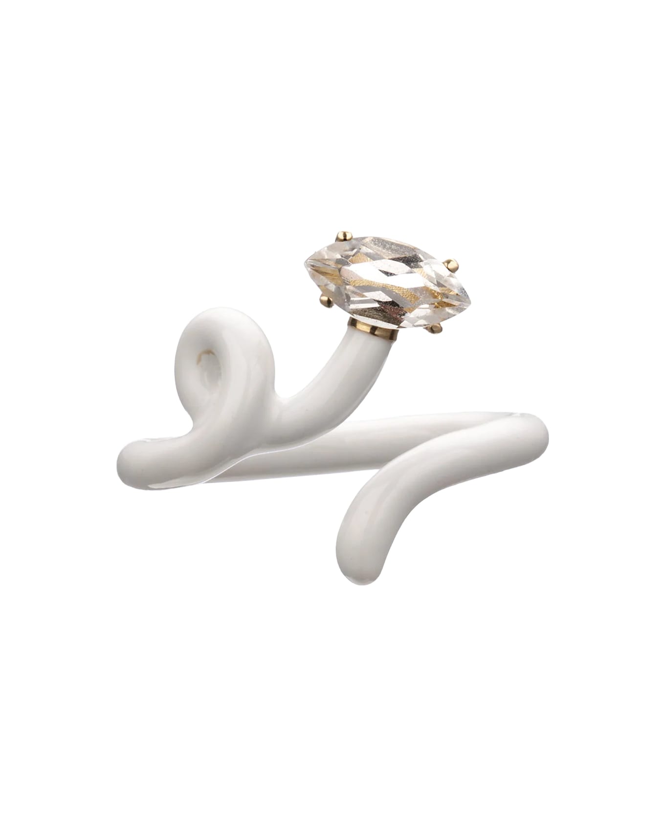 Baby Vine Tendril ring signed Bea Bongiasca made of silver and 9kt yellow gold with white enamel and marquise cut crystal ct. 0. 55.
