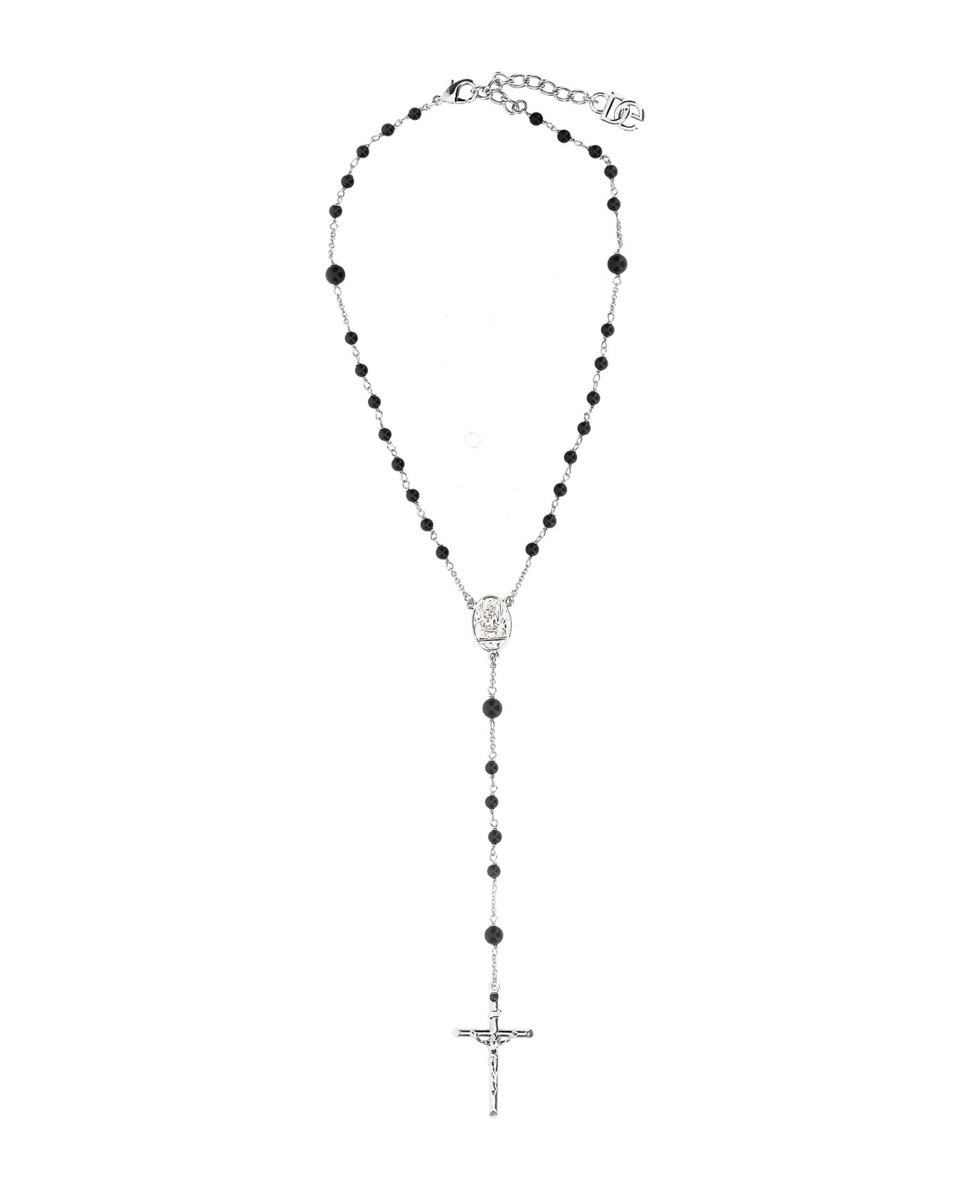 Short rosary necklace with black Onyx spheres, snap hook closure and a metal DG end, adjustable length and an engraved logo. Unseen and unseen materials free. Composition: